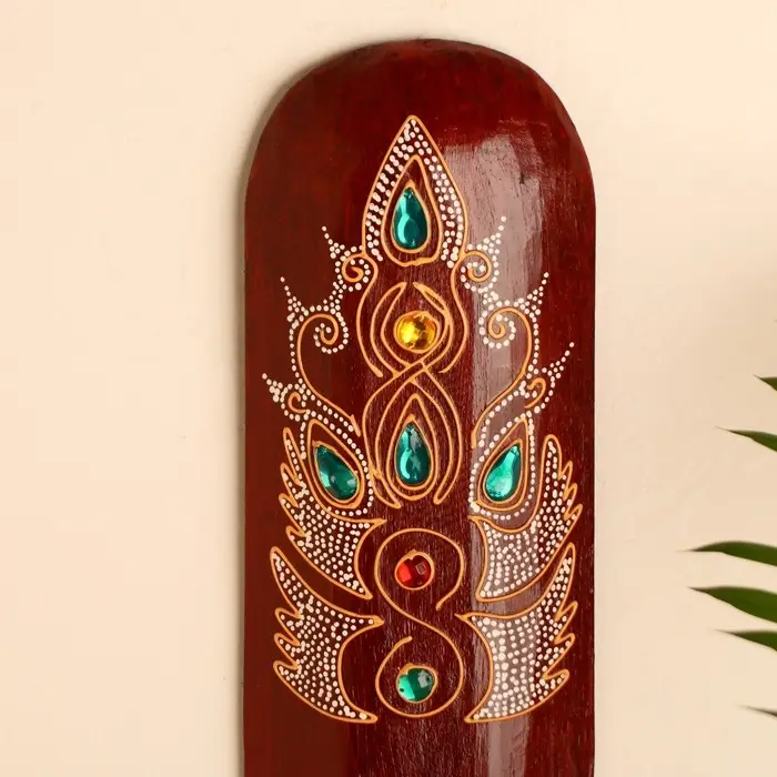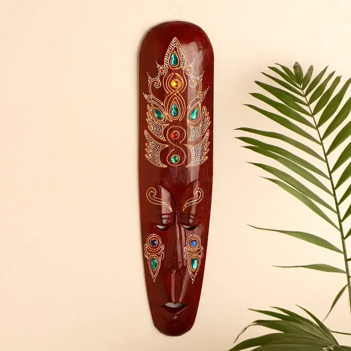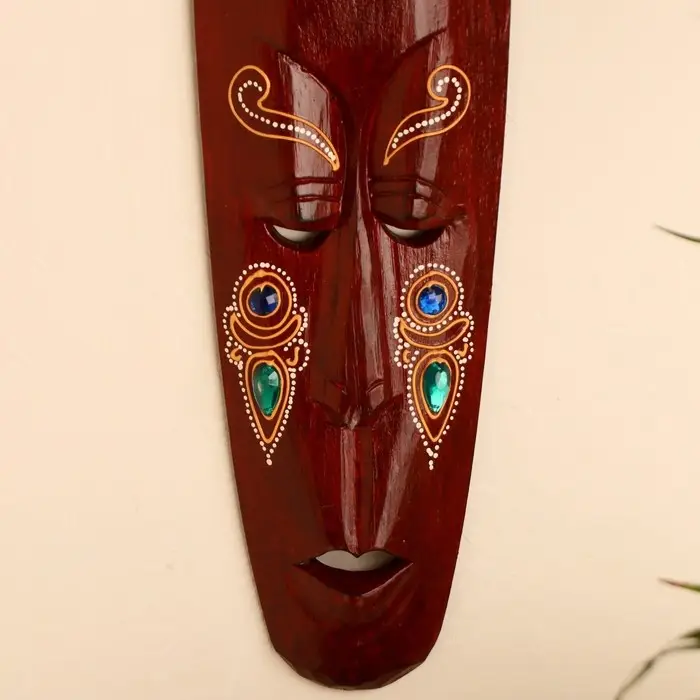 Маска настенная дерево "Абориген коричневый со стразами" 3х12х50 см