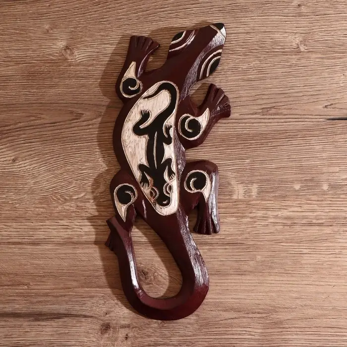 Панно настенное дерево "Геккон коричневый с гекконом" 1х11х30 см