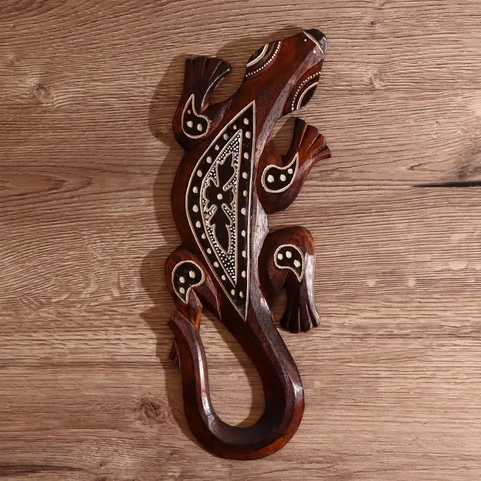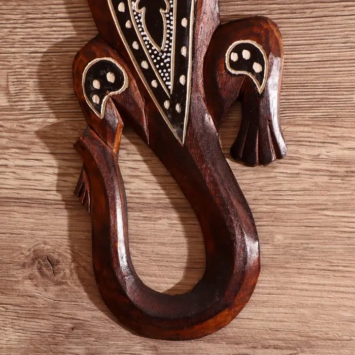 Панно настенное дерево "Геккон коричневый с орнаментом" 1х11х30 см