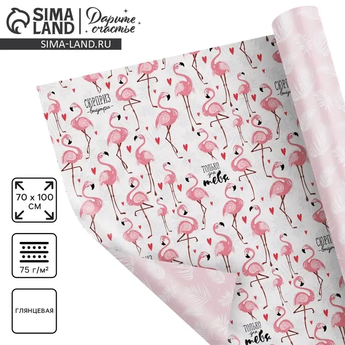 Бумага упаковочная глянцевая двухсторонняя «Фламинго», 70 х 100 см