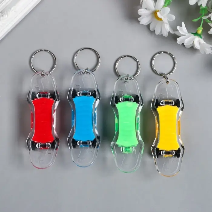 Фонарик брелок для ключей на кольце «Скейтборд», мигает, 1.7×8.2×2.8 см, МИКС