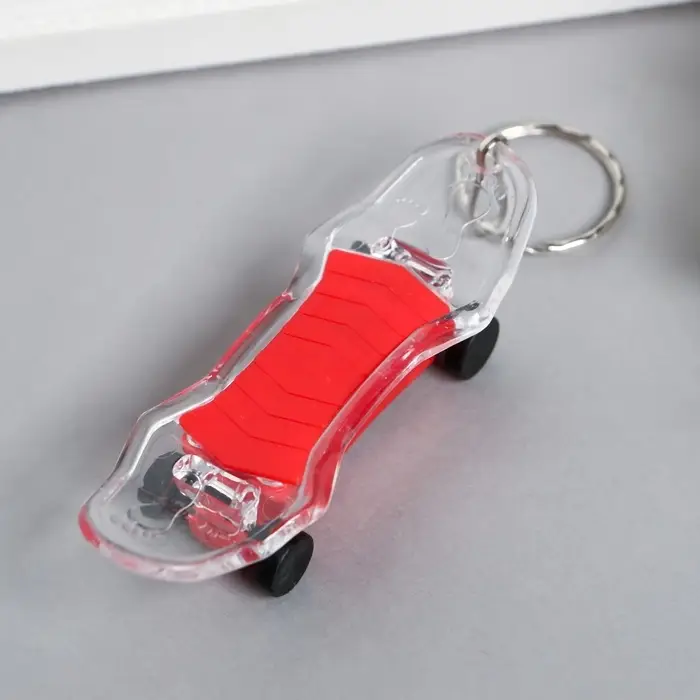 Брелок, размером всего 1,7х8,2х2,8 см, выполнен в форме скейтборда и выполнен из прочного пластика. Яркий мигающий свет (МИКС цветов) придаёт ему оригинальности, а его миниатюрный размер позволяет легко носить его на ключах. Идеальный подарок для любителей экстремальных видов спорта или просто стильных аксессуаров.