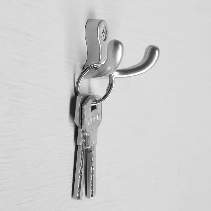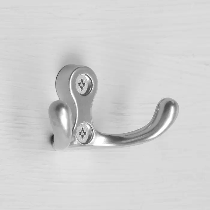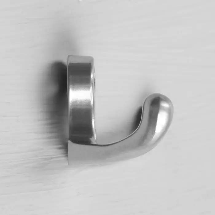 Крючок-вешалка может быть вмонтирован в компактный мебельный гарнитур. Модель имеет лаконичный дизайн.