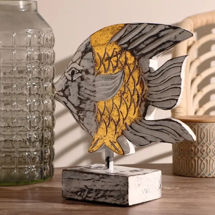 Сувенир "Золотая рыбка" дерево, на подставке 15х9х25 см