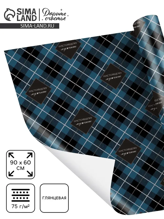 Бумага упаковочная глянцевая «Настоящему мужчине», 60 х 90 см