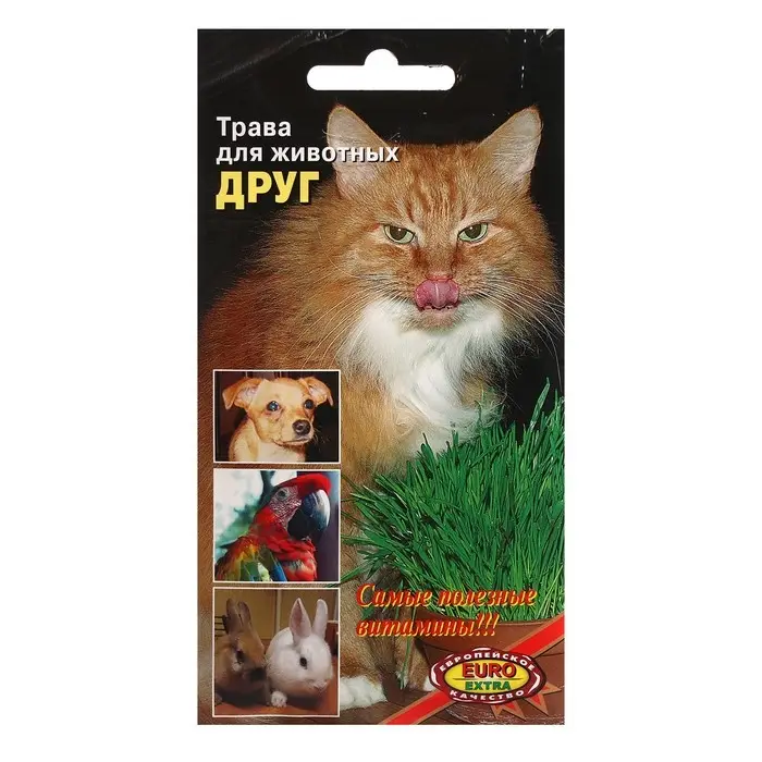 Свежая трава для котов, собак и других питомцев восполняет запас витаминов и минеральных веществ, улучшает процесс пищеварения и очищает желудок животного от шерсти.