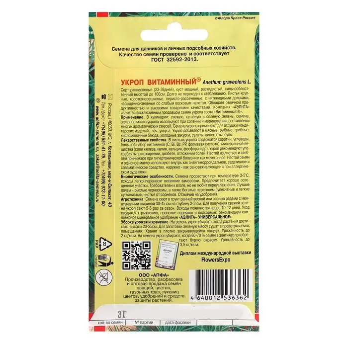 Семена Укроп "Аллигатор", 3г