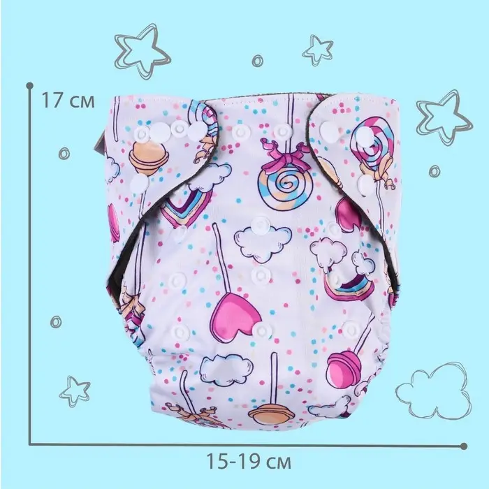 Многоразовый подгузник «Карамельки», 3-15 кг, угольно-бамбуковая ткань, Крошка Я