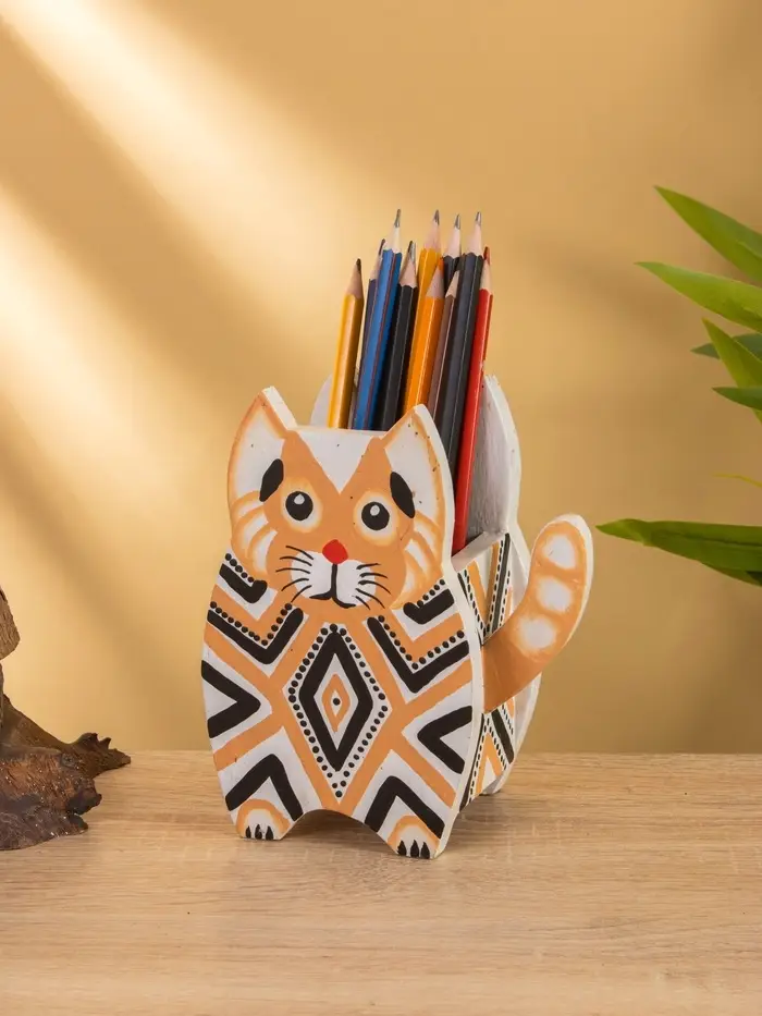 Подставка под ручки "Котик" албезия 12х8х15 см