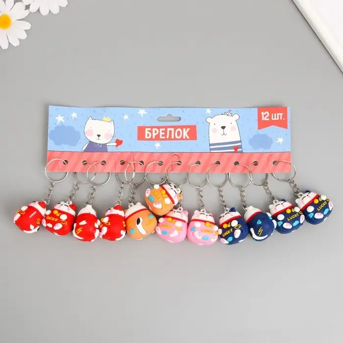 Брелок резина "Котик удачи" МИКС 4х3,3 см