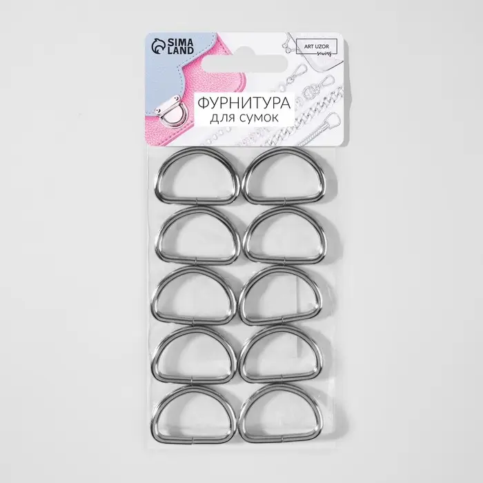 Полукольца для сумок, d=25 мм, толщина - 3 мм, 10 шт., цвет серебряный