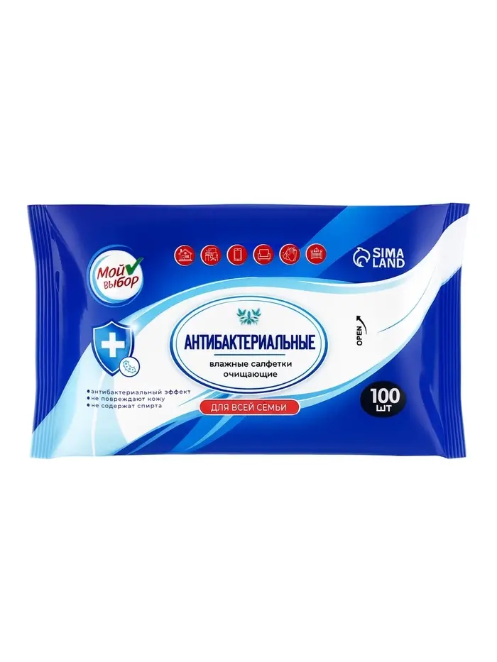 Влажные салфетки антибактериальные Мой выбор, 100 шт