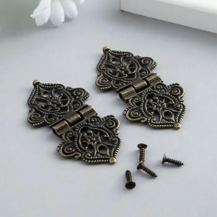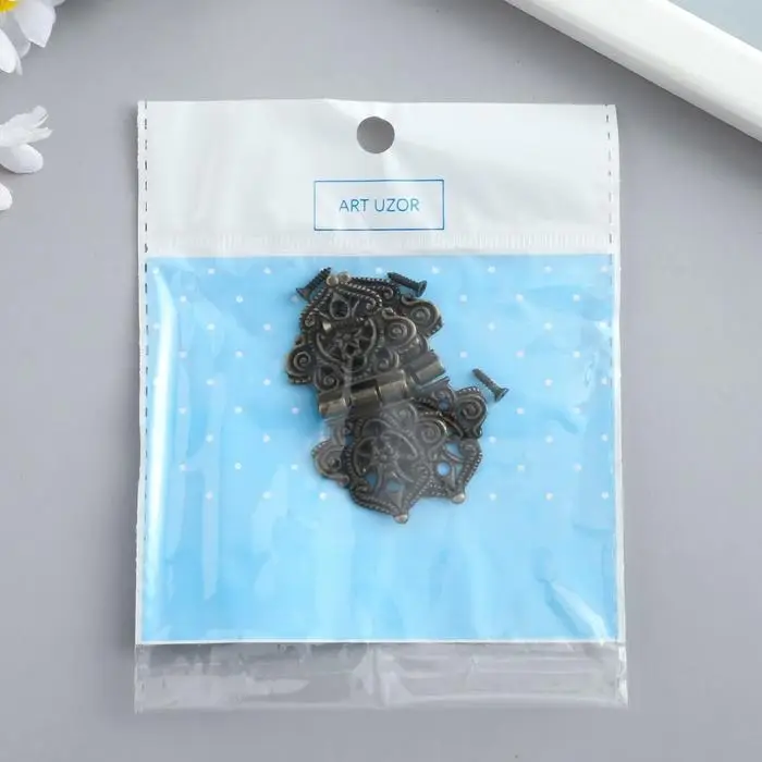 Петля для шкатулки металл "Узорная с цветами" бронза + гвозди 5,3х2,8 см