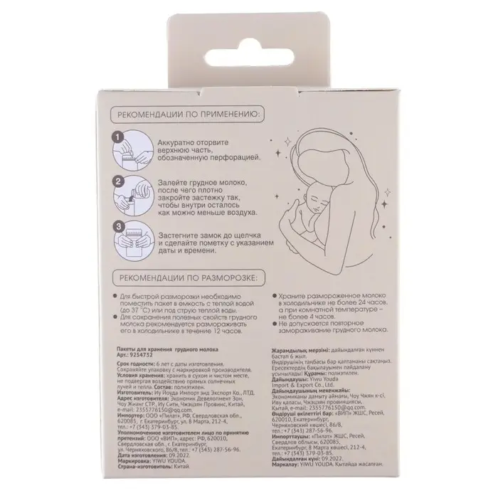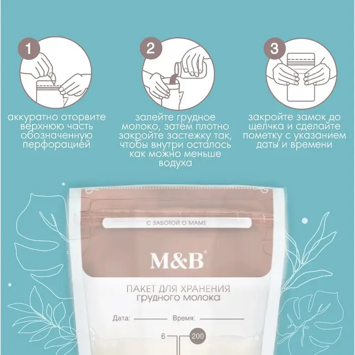 Пакеты для хранения и заморозки грудного молока, 200 мл., набор 30 шт., Mum&Baby