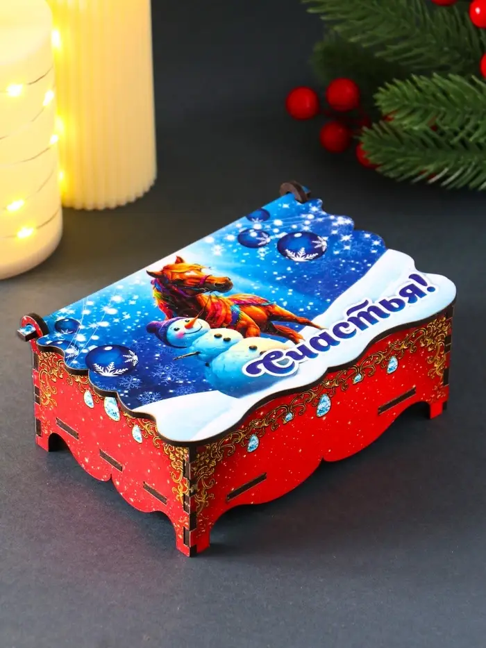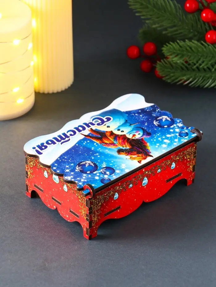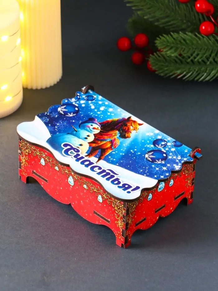 Шкатулка новогодняя "Счастья" 14х9,3х6 см