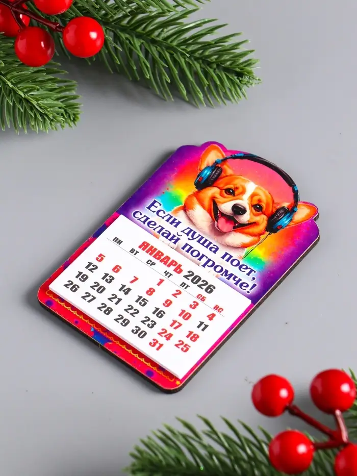 Магнит-календарь, отрывной, собака "Если душа поёт, сделай погромче" 9,5х6,5 см