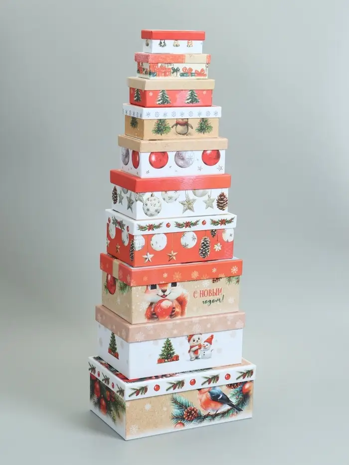 Набор коробок 10 в 1 "Новогодняя почта", 30 х 19 х 11,5 - 12 х 6,5 х 4 см