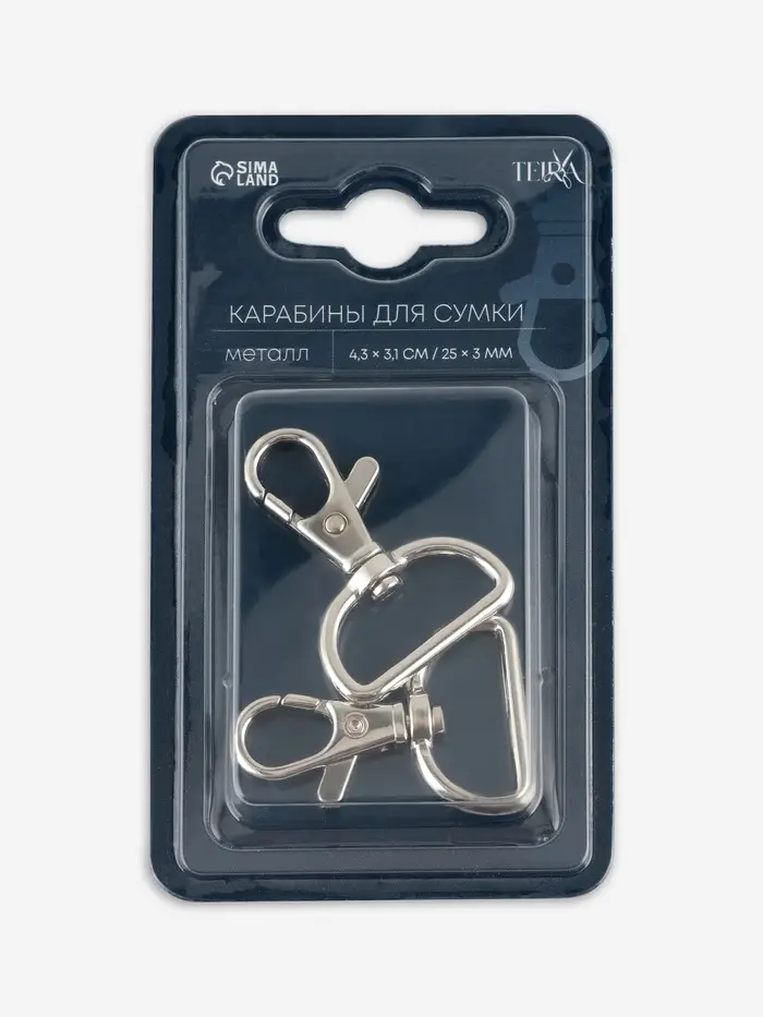 Карабины металл 9,1гр 4,3*3,1см/25*3мм (наб 2шт цена за наб) серебряный TR