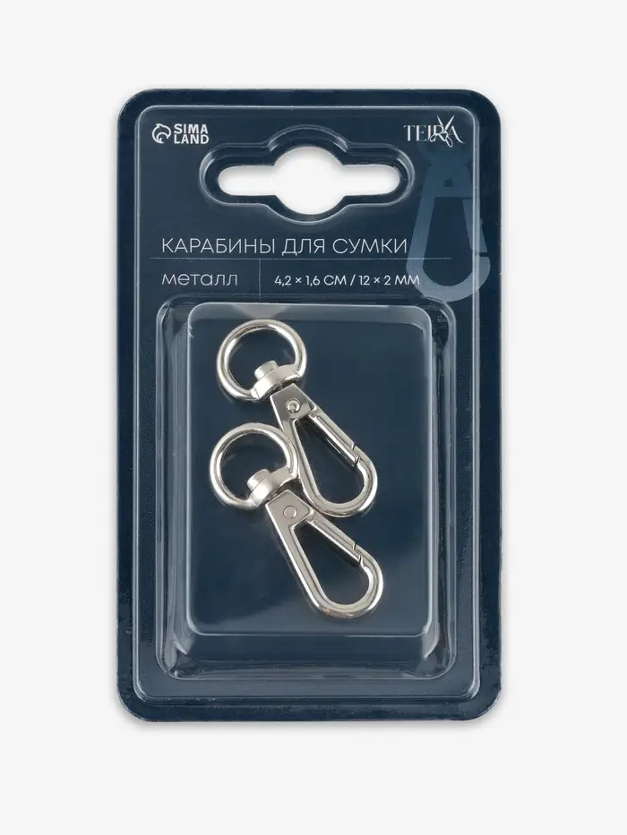 Карабины металл 6,2гр 4,2*1,6см/12*2мм (наб 2шт цена за наб) серебряный TR