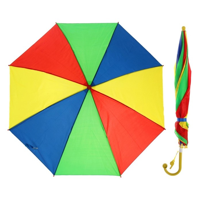 Зонт-трость «Радуга», полуавтоматический, со свистком, R=38см, цвета МИКС