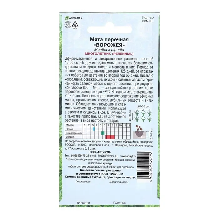 Семена Мята мексиканская "Янтарная свежесть", ц/п, 0,05 г