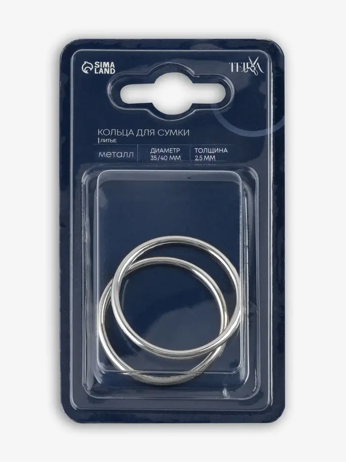 Кольцо литое TEIRA, для сумки, d=35/40 мм, набор 2 шт., 3.1 г, s=2.5 мм, цвет серебряный