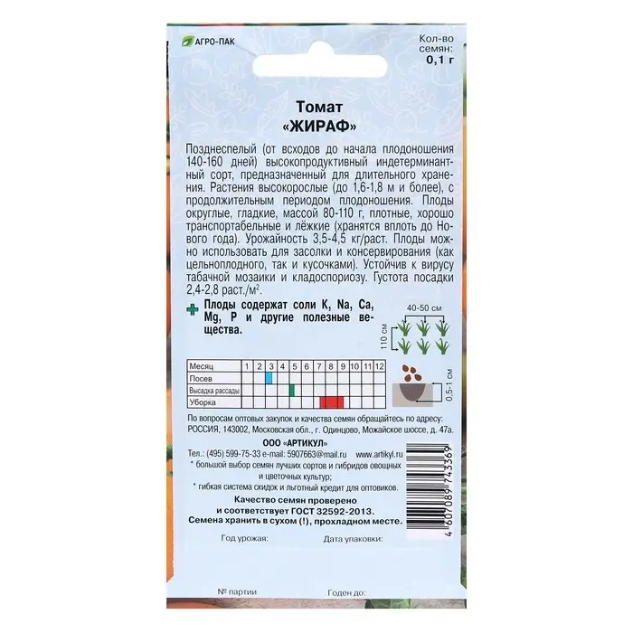 Семена Томат "Жираф" позднеспелый, 0,1 г.