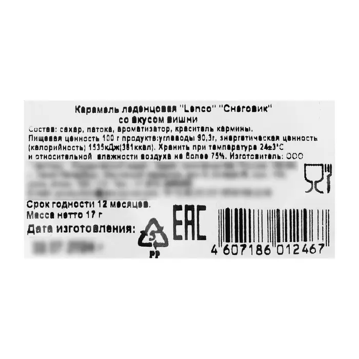 Состав: сахар, патока, натуральный ароматизатор, краситель, бета-каротин.