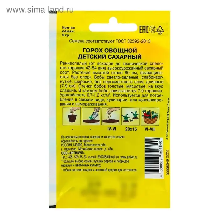 Семена Горох овощной "Детский Сахарный" раннеспелый, 5 г