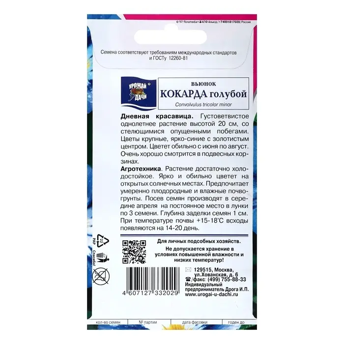 Семена цветов Вьюнок "Кокарда", Голубой, 0,5 г