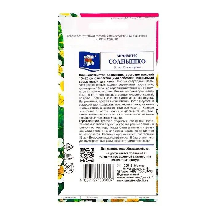 Семена цветов Лимнантес "Солнышко", 0,2г