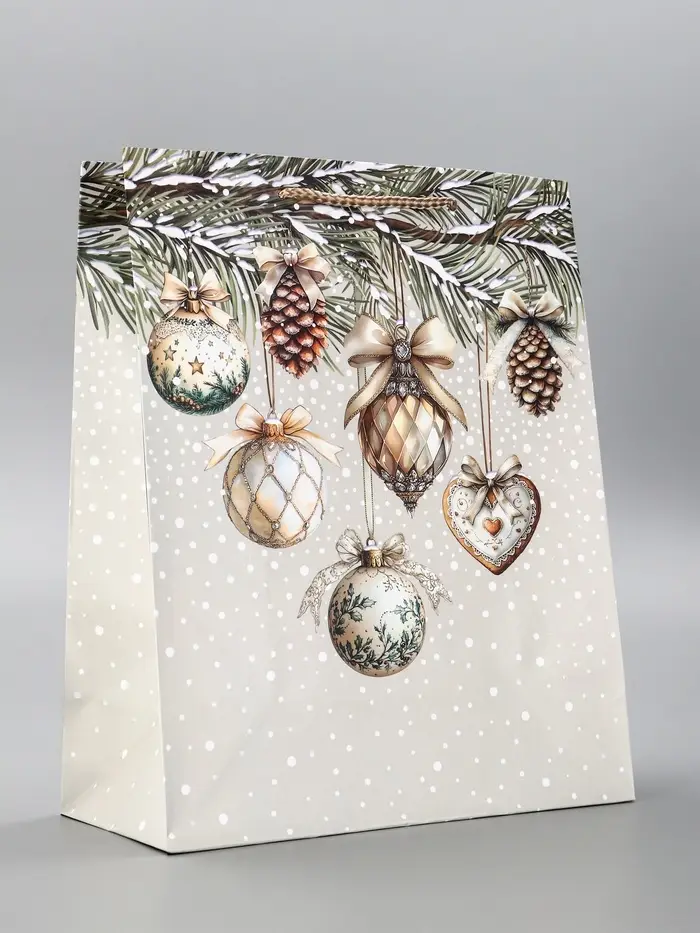 Пакет подарочный новогодний ламинированный, «Игрушки Новогодние» , 26×12×32 см