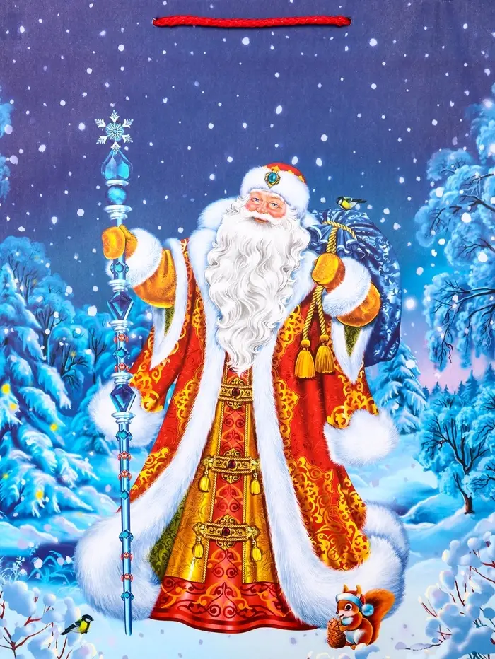 Пакет подарочный новогодний ламинированный, «Дед Мороз» , 33×10×42.5 см