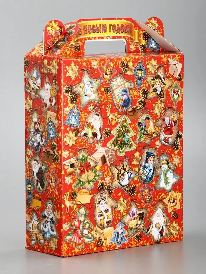 Подарочная новогодняя коробка «Праздничный медальончик» в красном, 16.8×7×25 см