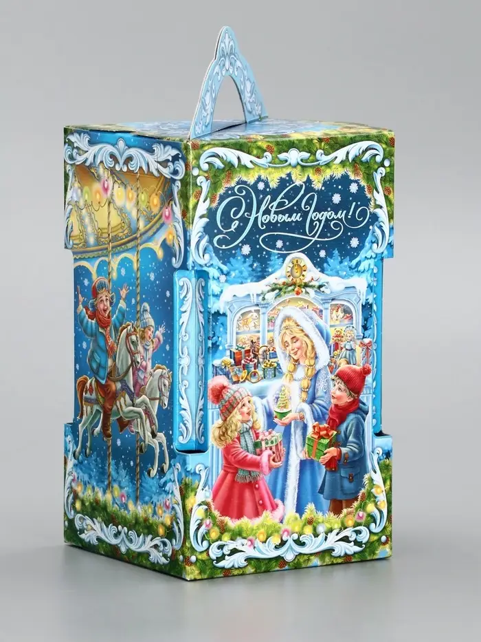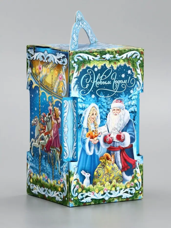 Подарочная новогодняя коробка «Новогодняя карусель», для сладких подарков, 10.6×10.6×18.8 см