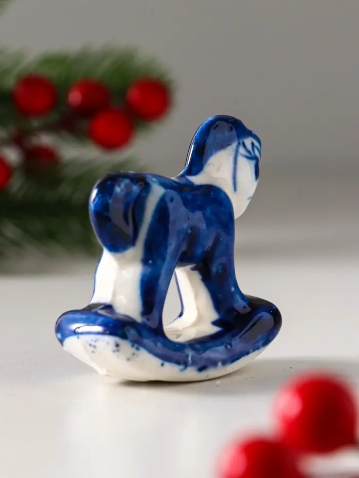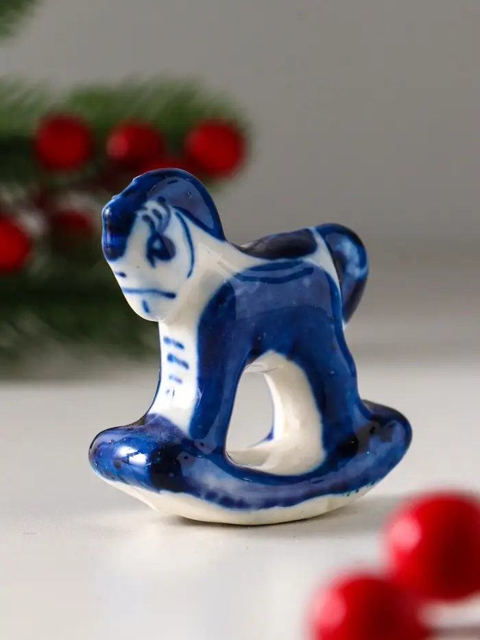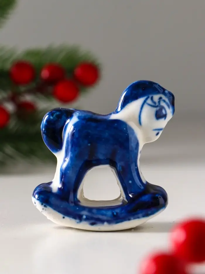 Сувенир "Конь-качалка", 5х5 см, гжель