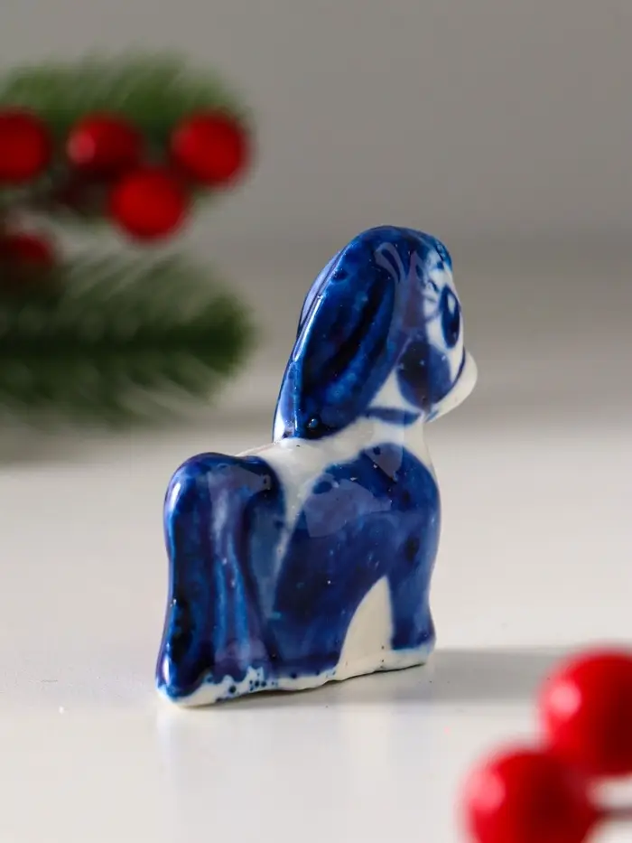Сувенир "Конь Ураган", 5х5 см, гжель