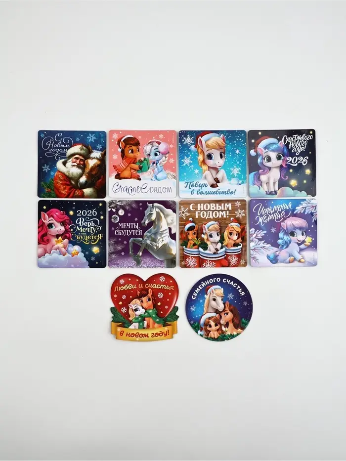 Магнит на холодильник «Новогодний», микс 10 шт., 8 х 8 см