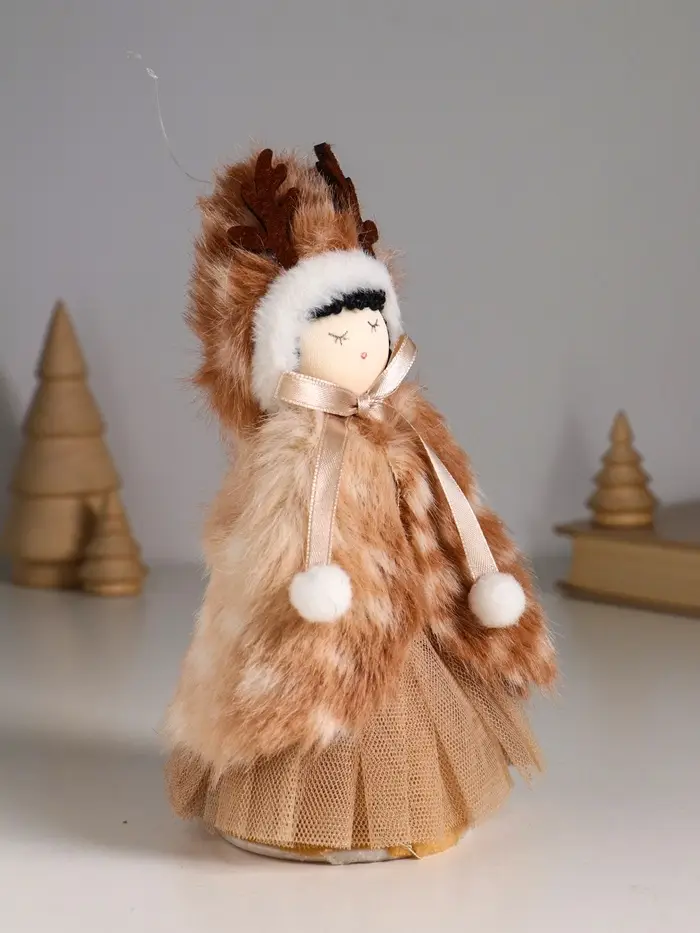 Кукла интерьерная "Девочка в меховой накидке, в шапке с рожками" 7х7х19 см