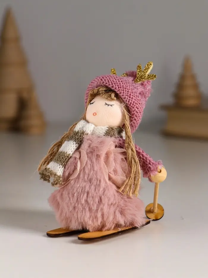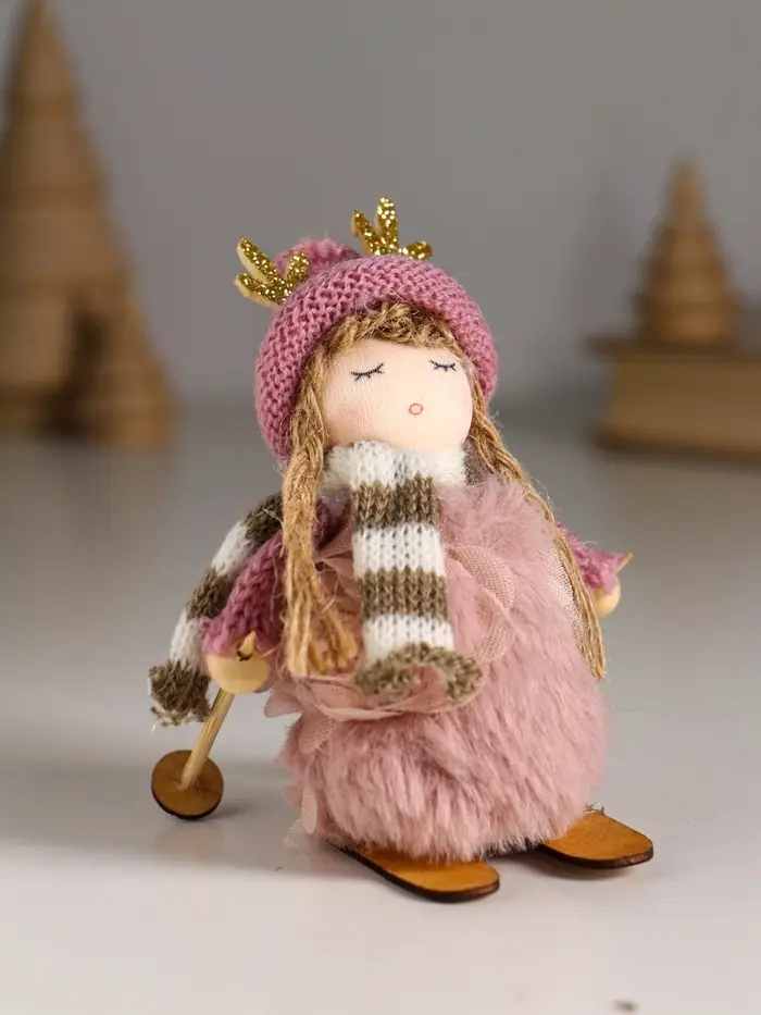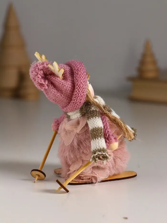 Кукла интерьерная "Малышка в платье зефирки, на лыжах" 5,7х4,2х10 см