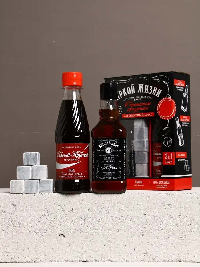 Набор "Яркой жизни", гель для душа виски, гель для душа кола, камни для виски