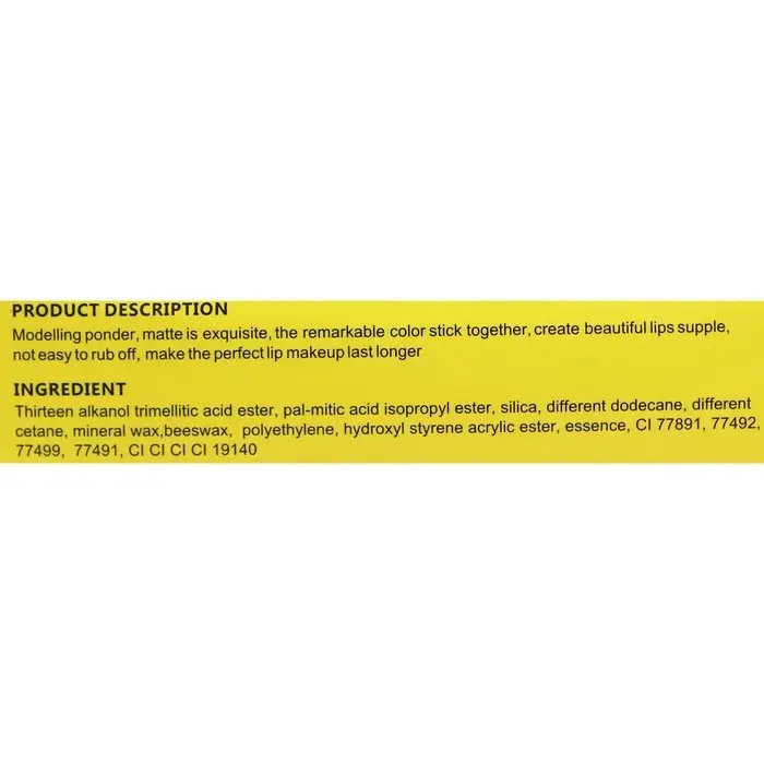 Состав: Thirteen Alkanol Trimellitic Acid Ester, Palmitic Acid Isopropyl Ester, Silica, Different Dodecane, Different Cetane, Mineral Wax,Beeswax, Polyethylene, Hydroxyl Styrene Acrylic Ester, Essence, CI 77891, CI 77492, CI 77499, CI 77491, CI 19140.