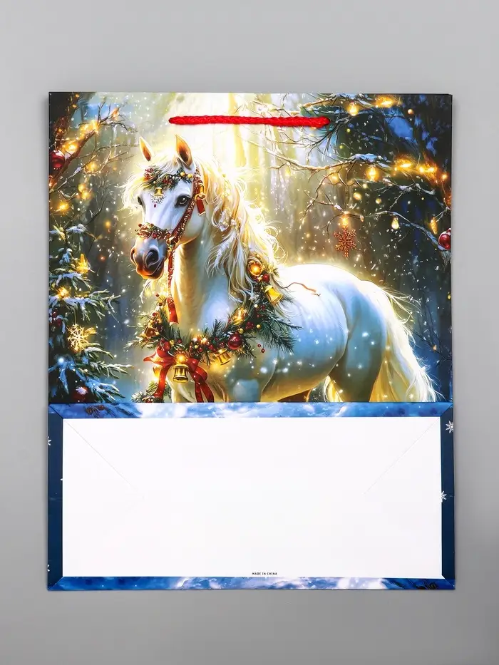 Пакет подарочный новогодний ламинированный, «Конь» , 26×12×32 см