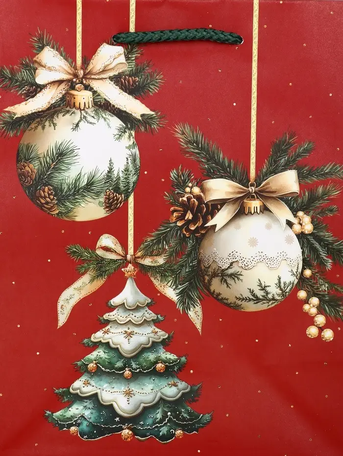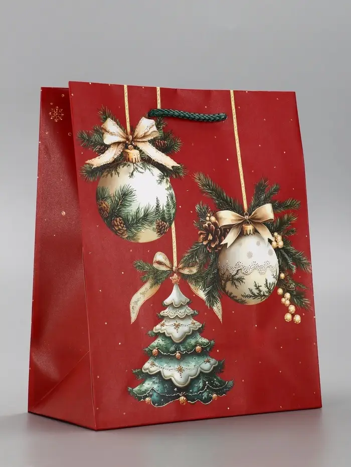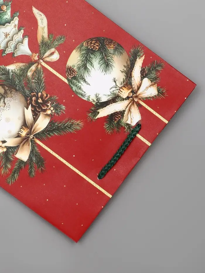 Пакет подарочный новогодний ламинированный, «Ёлки и шары» , 18×10×22.3 см