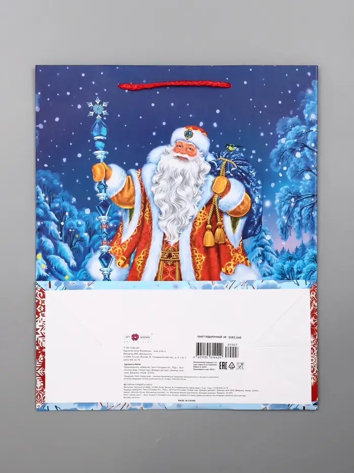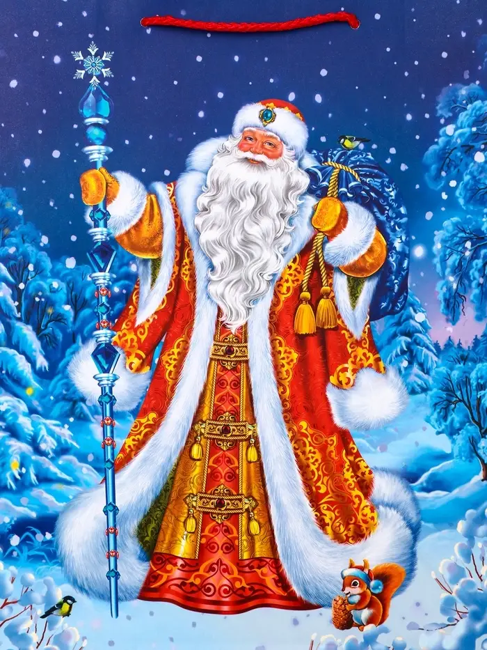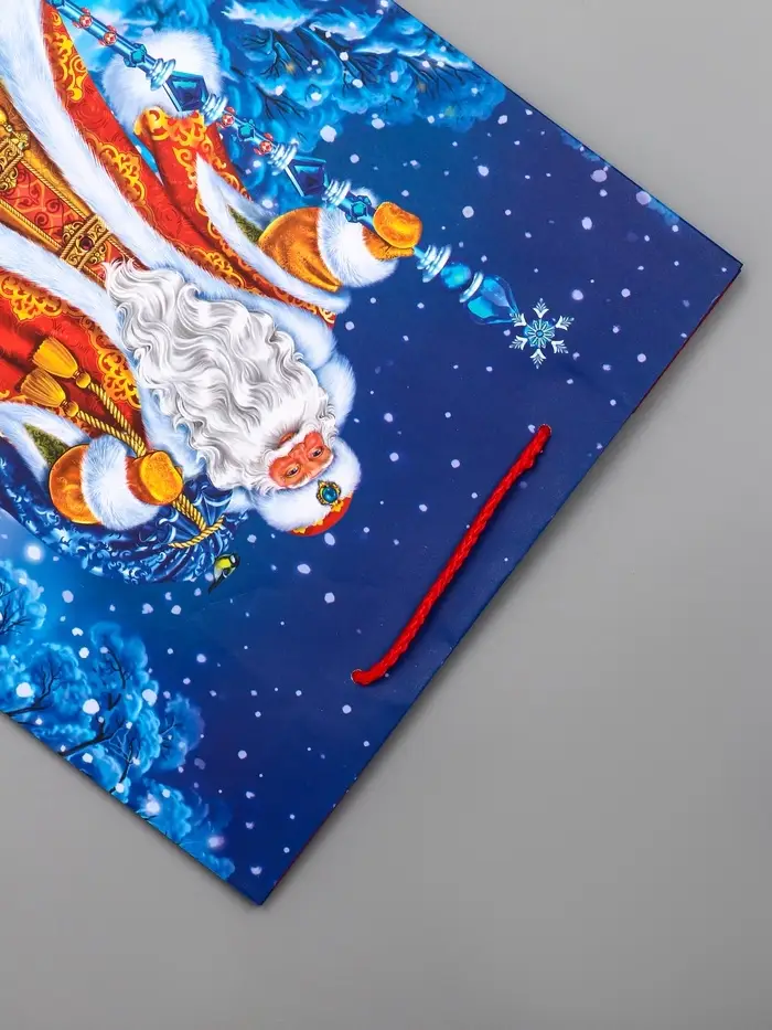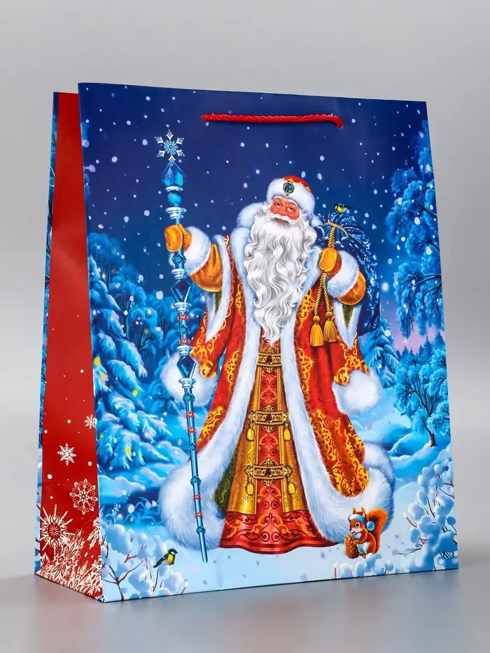 Пакет подарочный новогодний ламинированный, «Дед Мороз в лесу» , 26×12×32 см