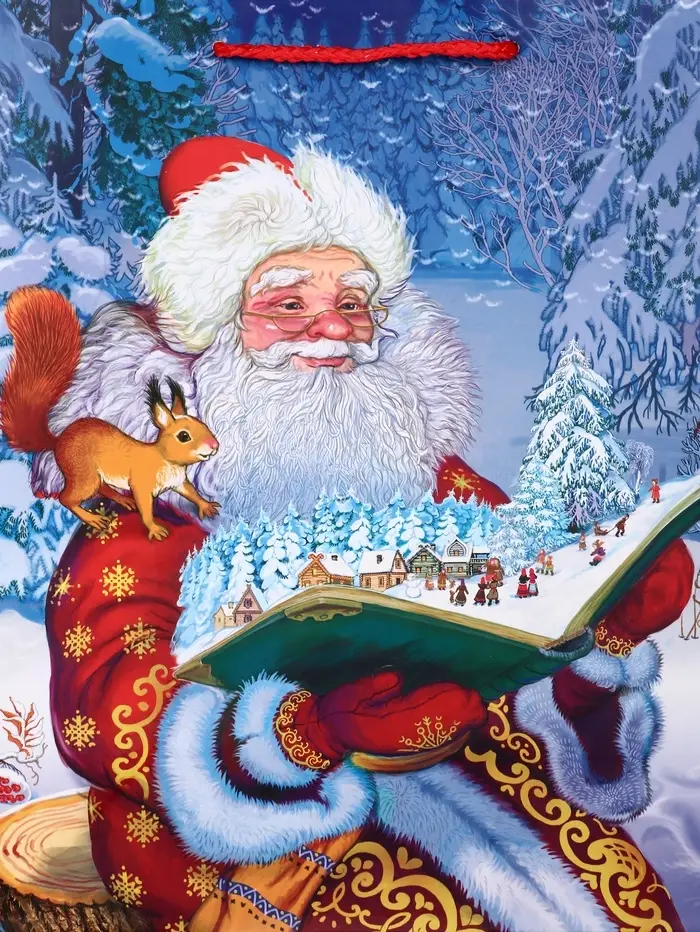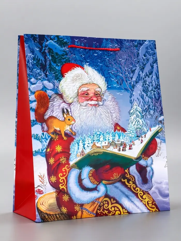 Пакет подарочный новогодний ламинированный, «Дед Мороз» , 26×12×32 см