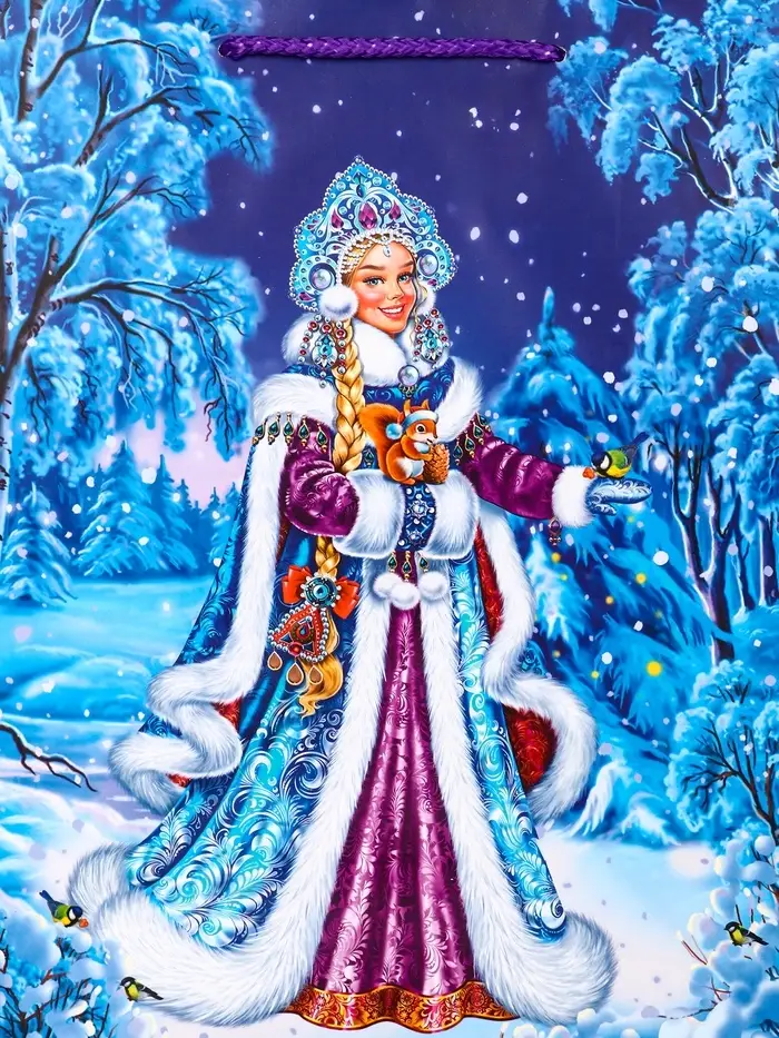 Пакет подарочный новогодний ламинированный, «Снегурочка» , 26×12×32 см