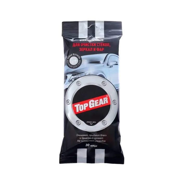 Салфетки влажные для очистки стекол ''Top Gear'' превосходно очищают от дорожной грязи, масла, жира, следов насекомых и других загрязнений. Не оставляют разводов и ворсинок на поверхности.