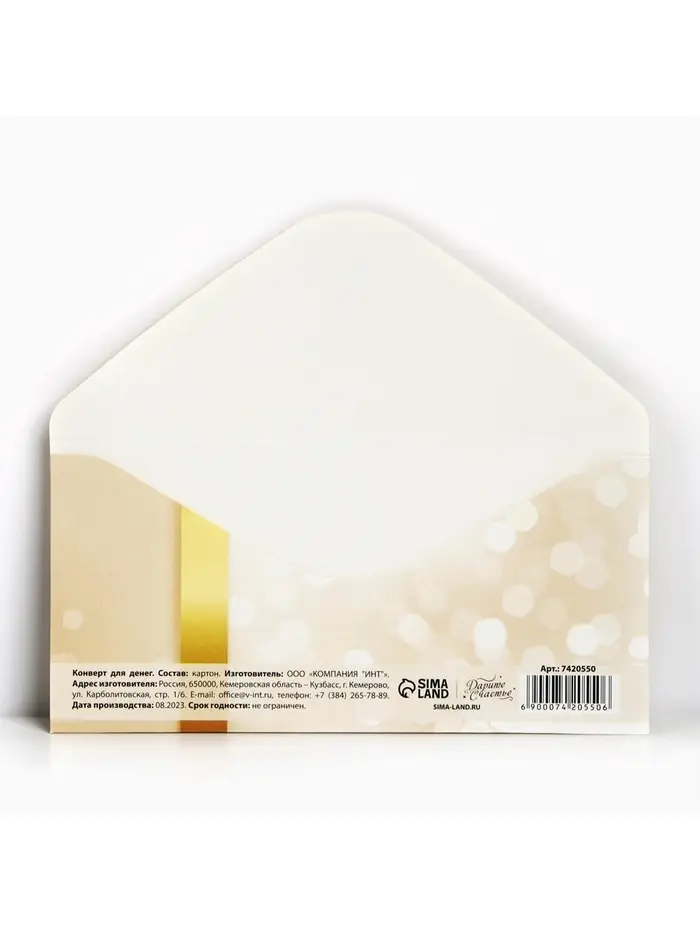 Конверт для денег «Золотой бант», 16.5×8 см