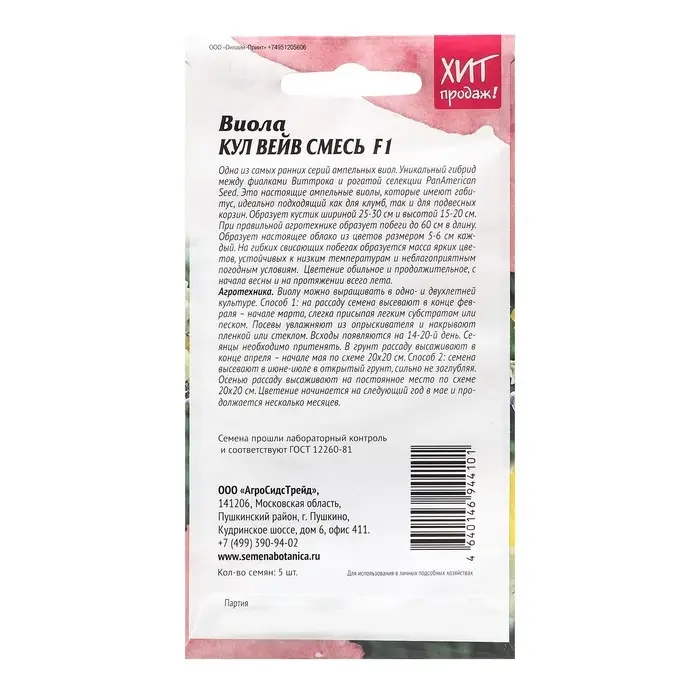 Семена Виола "Великолепие лиловое", F1, 5 шт.